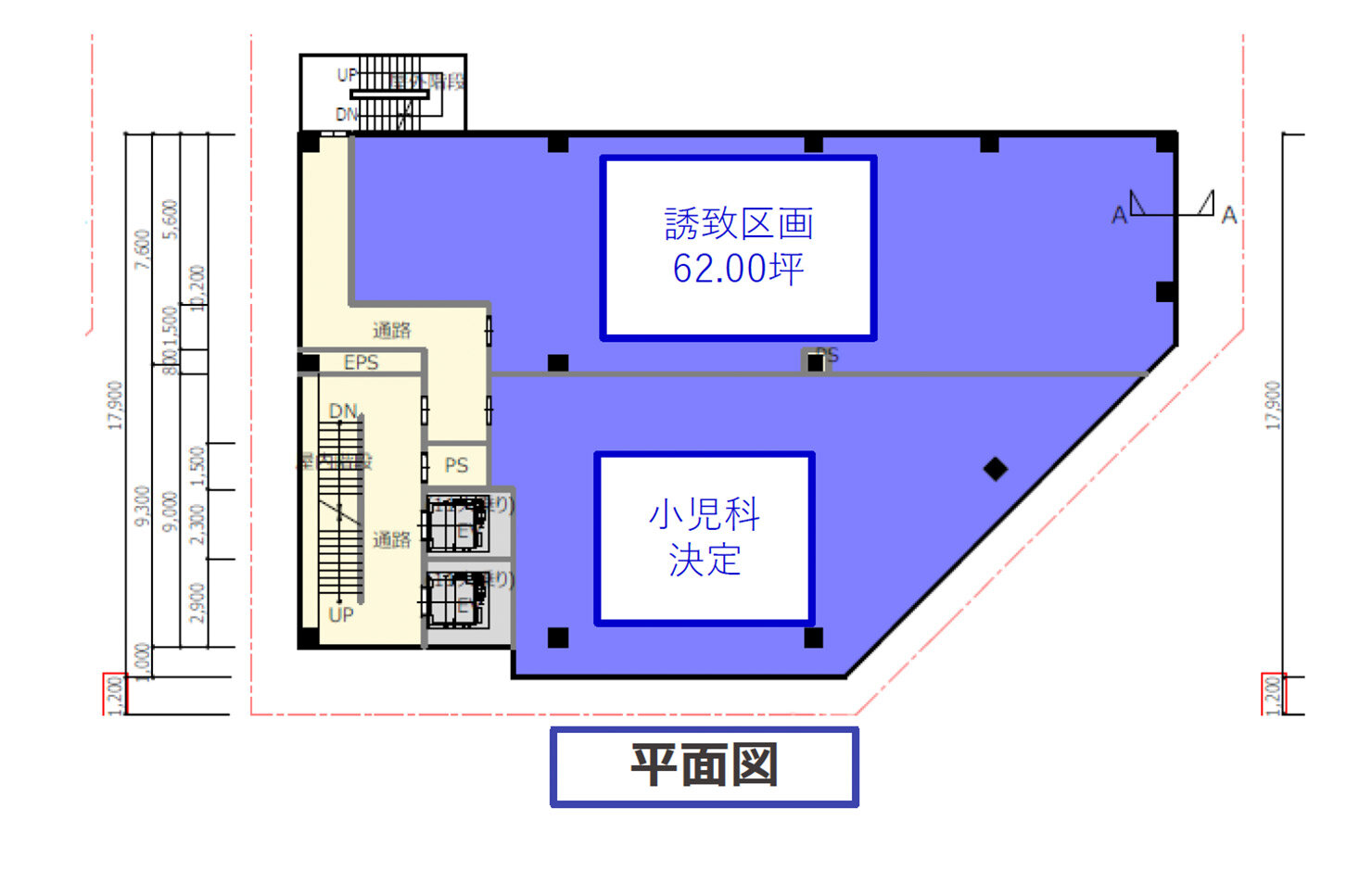 区画は50坪を超える広さがあり、複数の診察室や処置室、待合スペースの確保が可能です。