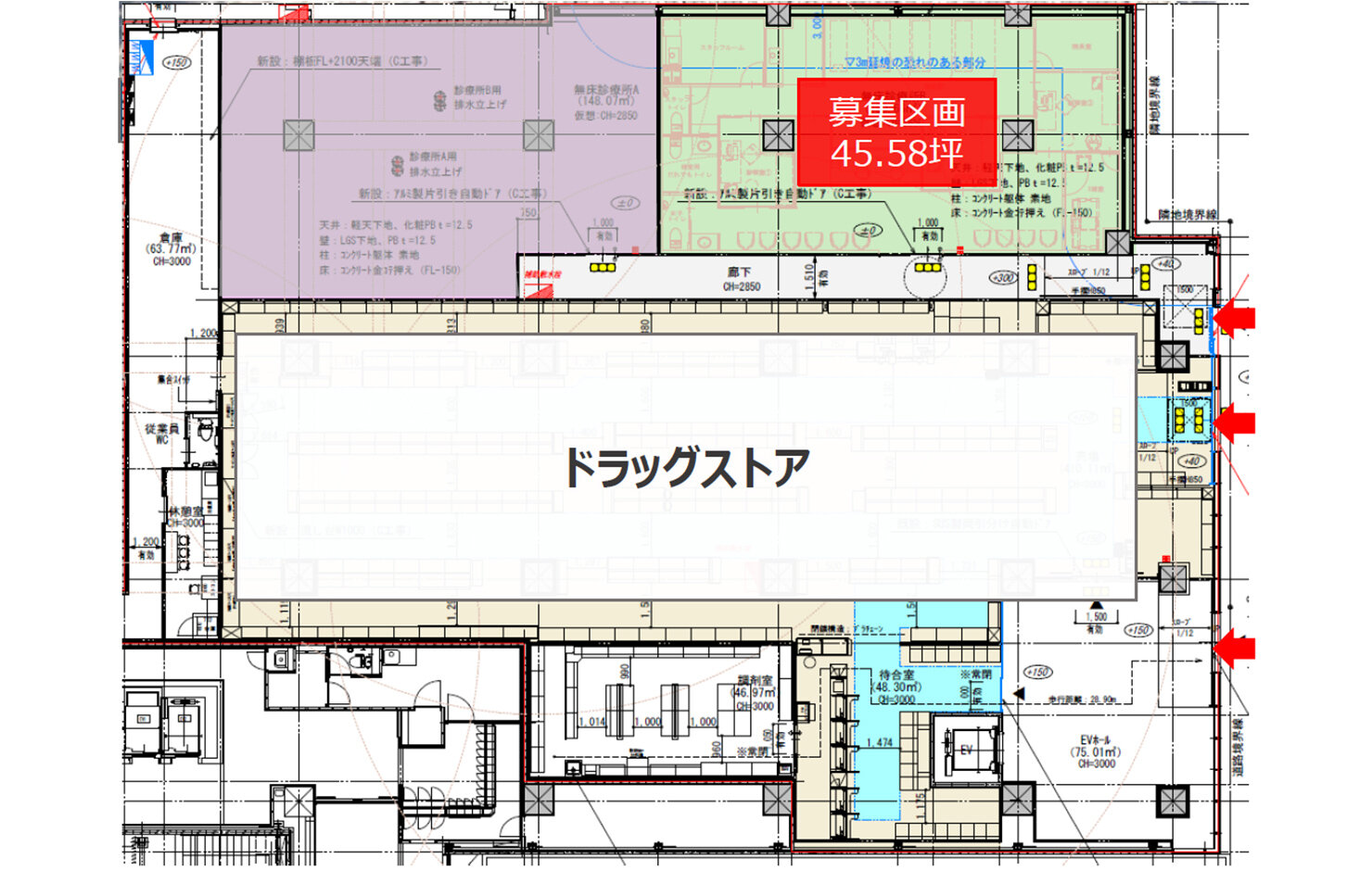 - 1F:ドラッグストア、クリニック2区画