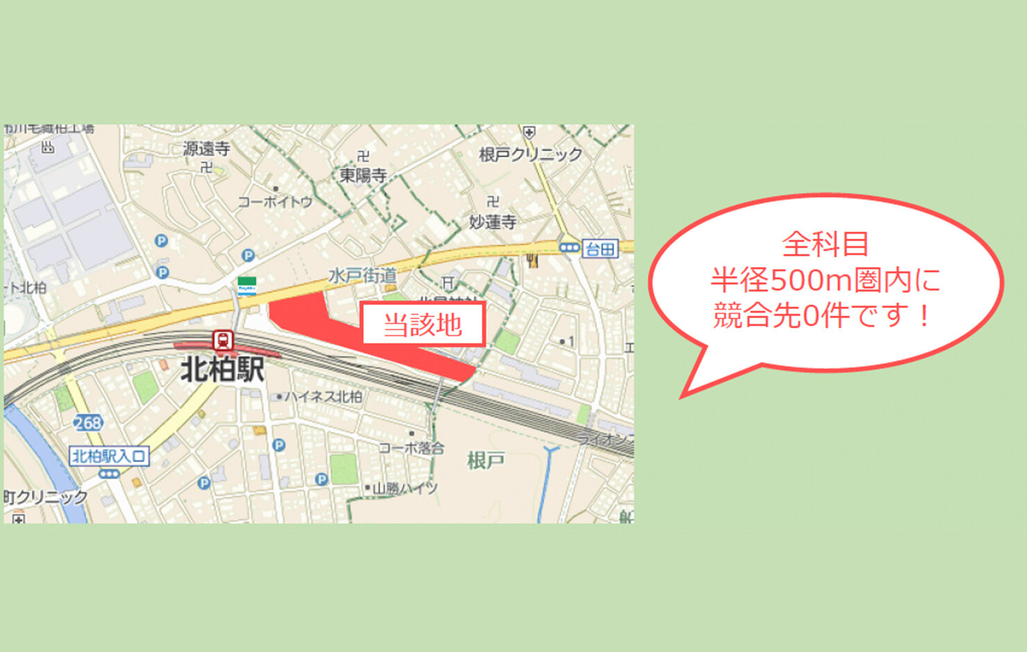 - JR常磐線・東京メトロ千代田線「北柏」駅より徒歩2分