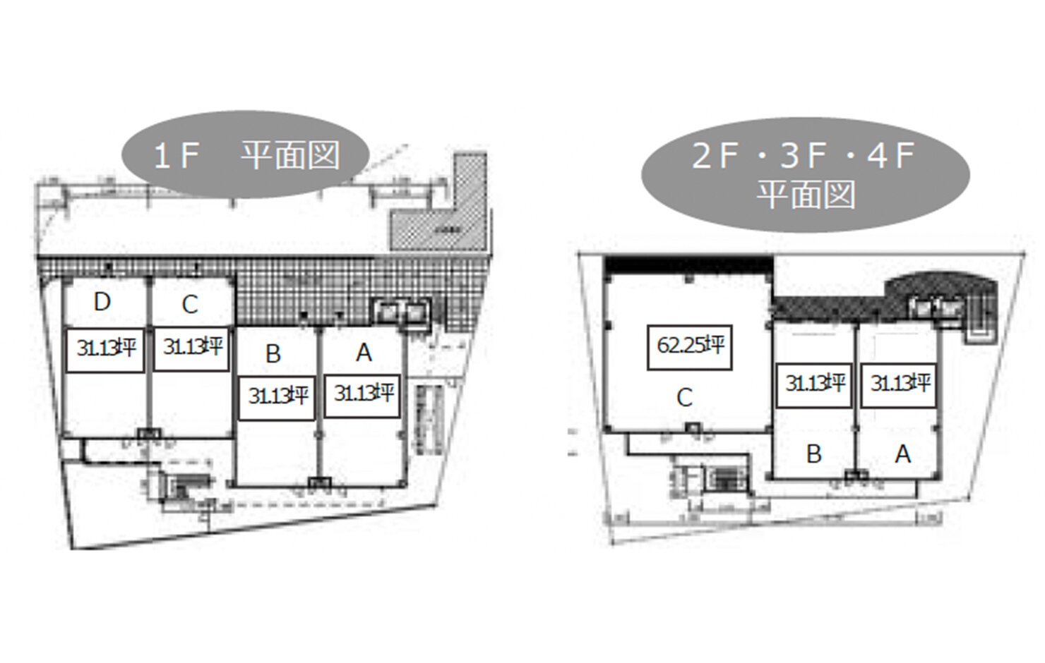 - 1階 28,000円/坪 2階~4階 15,000円/坪